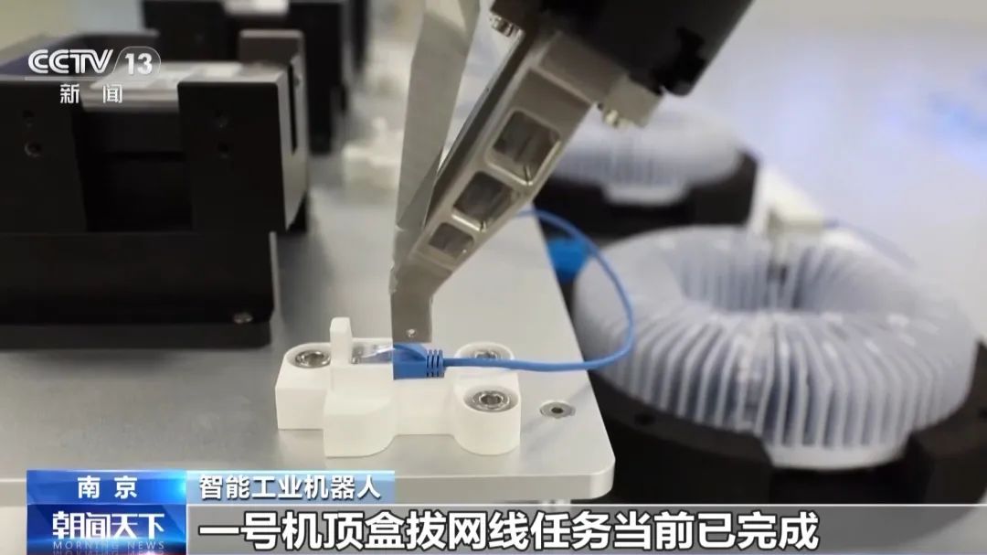 總臺記者現(xiàn)場也體驗(yàn)了一下工廠正在開發(fā)的人機(jī)交互作業(yè)。記者先后發(fā)出拔出、插入機(jī)頂盒網(wǎng)線的指令,精細(xì)化的操作,智能工業(yè)機(jī)器人都順利完成。