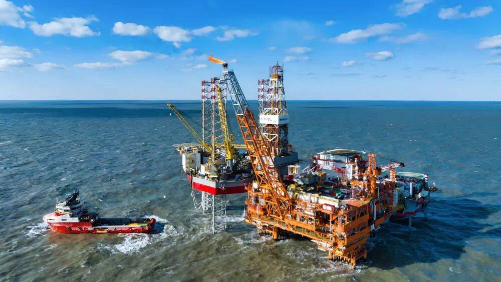 這是2025年2月8日拍攝的渤中26-6油田一期開發(fā)項目海上作業(yè)平臺(無人機(jī)照片)。新華社發(fā)(杜鵬輝 攝)