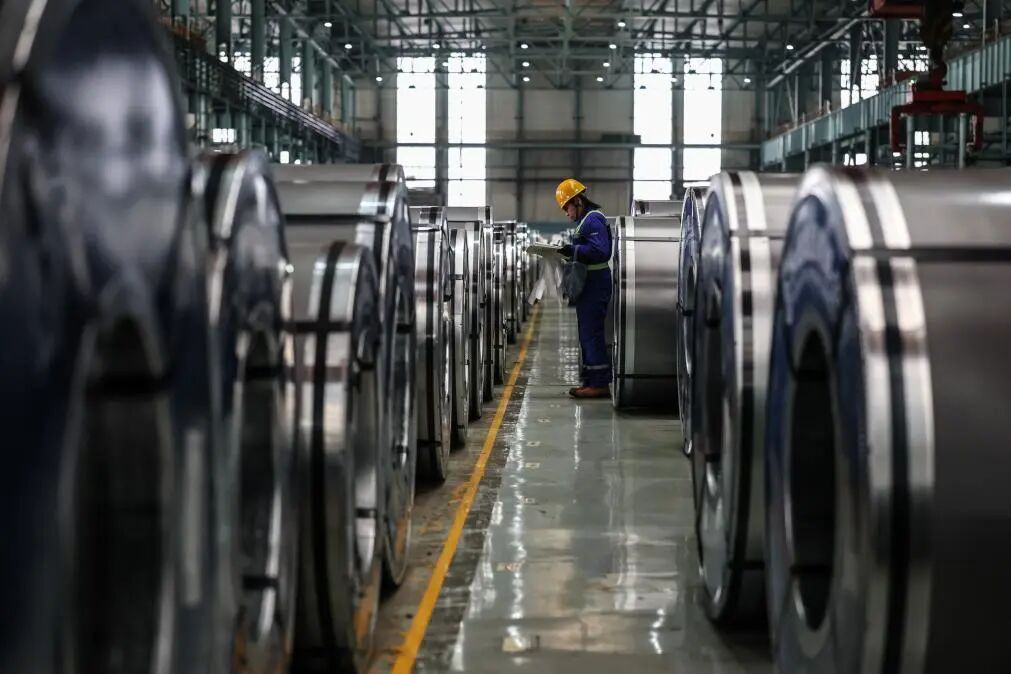 2025年12月6日,工作人員在本鋼板材冷軋總廠第三冷軋廠成品庫核對清點產品。新華社記者 潘昱龍 攝