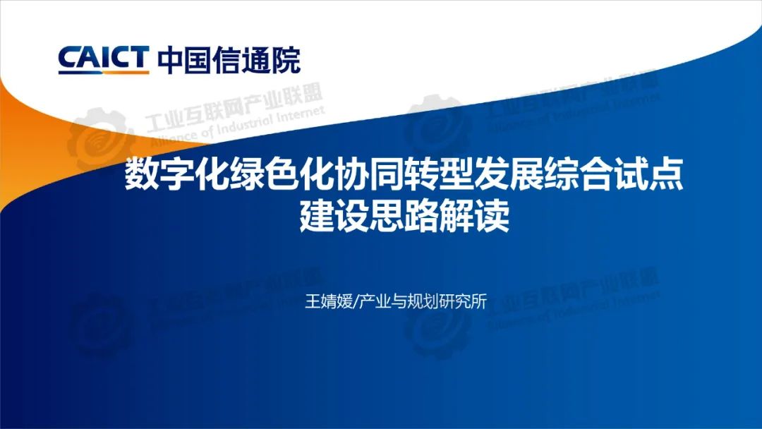 本期為您帶來由中國信息通信研究院產業與規劃研究所高級工程師王婧媛分享的《數字化綠色化協同轉型綜合試點建設解讀》。數字化轉型和綠色化轉型不僅是當今世界發展的兩大主題,也是相互依存、相互促進的孿生體。“雙化協同”是指數字化與綠色化兩大戰略相互協同、相互促進,在數字化轉型中同步實現綠色化,以綠色化帶動數字化,在綠色化轉型中充分發揮數字化賦能作用,大力發展綠色數字融合新技術,培育綠色數字產業新生態。