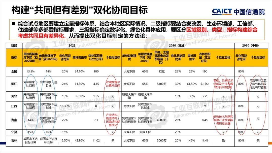2022年,中央網信辦等五部門聯合開展了雙化協同綜合試點建設,要求各試點地區制定具體實施方案,部署了五大建設方向。雙化綜合試點地區要將雙化協同理念、建設方向與地區雙碳工作相互結合,從打造數字底座+綠色底座夯實雙化基礎,以雙化治理探明地區碳排放底數、支撐決策治理,以雙化賦能實現數字產業綠色化、傳統產業和生活低碳化,以雙化創新開展數字化生態資源、碳市場和碳金融的高效價值轉化,培育雙化新技術、新產業,最后還要配套雙化協同政策、要素、標準、財稅等機制創新。