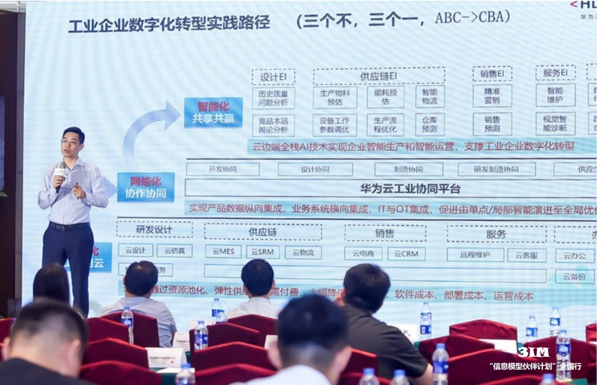 與會單位圍繞政府政策、數(shù)據(jù)融合互操作、數(shù)字化工具供給、數(shù)字化技術(shù)應(yīng)用等方面展開交流和對接,并分別就中小企業(yè)數(shù)字化發(fā)展路徑、信息模型賦能、未來建議等進(jìn)行主題研討。中小企業(yè)數(shù)字化轉(zhuǎn)型實(shí)踐路徑包含三個階段:一是數(shù)據(jù)資源池化,企業(yè)研發(fā)設(shè)計、供應(yīng)鏈、銷售、服務(wù)、辦公等數(shù)據(jù)可通過公有云來滿足各業(yè)務(wù)階段數(shù)字化轉(zhuǎn)型需求,降低軟件部署和運(yùn)營成本。二是網(wǎng)絡(luò)化,通過產(chǎn)品數(shù)據(jù)縱向集成,業(yè)務(wù)系統(tǒng)橫向集成,促進(jìn)由單點(diǎn)/局部智能向全局優(yōu)化發(fā)展。三是智能化,利用云邊端全棧AI技術(shù)實(shí)現(xiàn)企業(yè)智能化生產(chǎn)和運(yùn)營。