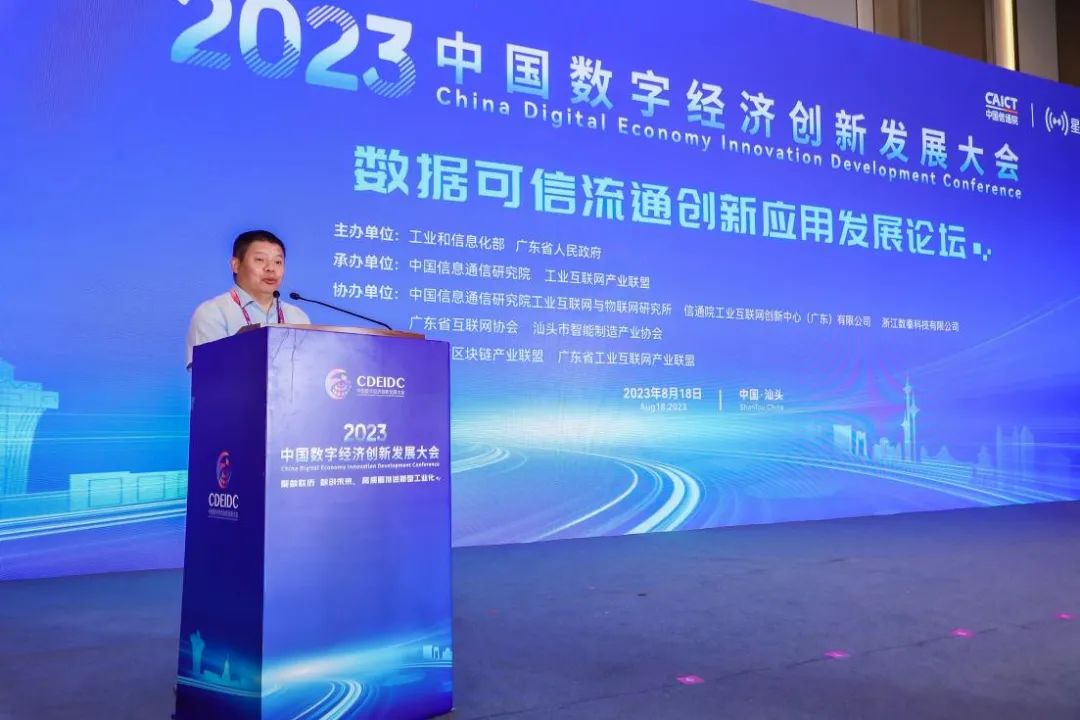 8月18日,2023中國數字經濟創新發展大會——“數據可信流通創新應用發展”主題論壇在廣東省汕頭市成功召開,論壇邀請了政、產、學、研、用多方共同探討數據可信流通賦能數字化轉型高質量發展,分享“星火·鏈網”兩大創新應用場景,促進數據安全及可信構建,推動汕頭市數字貿易高質量發展,最終實現助力汕頭市數字經濟高質量發展的目標。