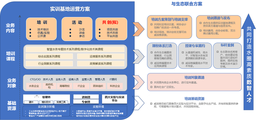 (3)業(yè)界領(lǐng)先,共創(chuàng)服務(wù)基地由智慧水務(wù)領(lǐng)軍的技術(shù)開發(fā)方牽頭建設(shè),范圍涵蓋從源頭到龍頭全流程全場景數(shù)字化技術(shù)相關(guān)的軟硬件產(chǎn)品和解決方案,在全國有落地標(biāo)桿案例,全鏈閉環(huán)的體系化課程設(shè)計(jì),提供實(shí)訓(xùn)一條龍服務(wù),含人才實(shí)訓(xùn)、實(shí)地考察、講座沙龍、政策宣貫、標(biāo)桿參觀等。