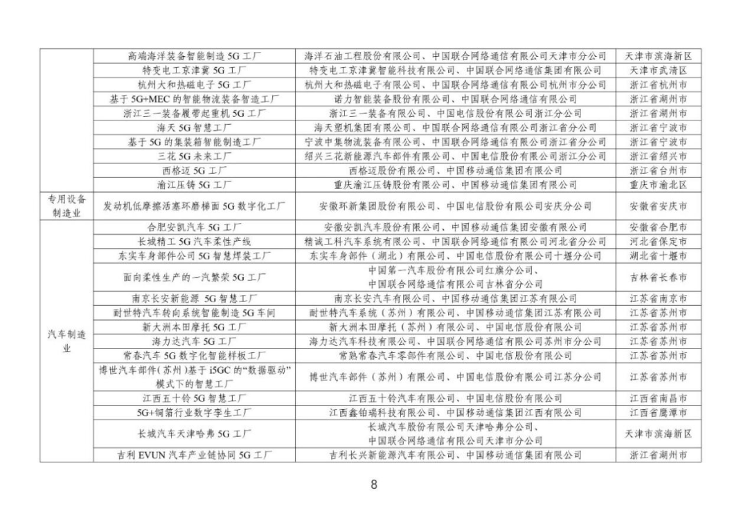 工業和信息化部信息通信管理局一級巡視員王鵬表示,目前全國“5G+工業互聯網”的項目數已經超過8000個,5G已經由生產現場監測、廠區智能物流等外圍輔助環節,深入到遠程設備操控、設備協同作業等核心控制環節。今年以來,工信部組織各地方積極推薦優秀項目,經過評審認定和社會公示形成了《2023年5G工廠目錄》。王鵬介紹,從行業分布來看,《2023年5G工廠名錄》中收錄的5G工廠已經廣泛覆蓋24個國民經濟大類。從地域分布來看,名錄中的5G工廠分布在全國26個省、區、市,其中江蘇、山東、湖北、安徽、浙江、江西、天津、河北、遼寧、湖南、廣東等省市的5G工廠數量位居全國前10位。從企業的類型來看,名錄收錄了中央企業、國有企業、民營企業、外資企業、合資企業等各類市場主體,其中大型企業占比達到52.7%,中小企業也達到了47.3%,已經形成大中小企業協同推進的良好局面。從場景實踐來看,工信部前期已經發布過“5G+工業互聯網”20大典型場景,樹立了一批“樣板間”,而在名錄中的300個5G工廠中,20個典型應用場景的實踐均超過50%,形成了“商品房”的示范推廣效應。從發展成效來看,據工業互聯網產業聯盟根據名錄當中企業報送的數據來測算,300個5G工廠將帶動總投資近百億元,對企業提質降本增效、綠色安全發展等方面的促進作用明顯。根據工業互聯網產業聯盟通過“5G工廠種子項目”統計,截至今年9月,全國已有1800余個5G工廠項目,涉及29個省(區、市),已覆蓋裝備制造、電子設備制造、石化化工、港口等10個“5G+工業互聯網”重點行業,以及有色金屬、材料等其他行業,項目類型已包含產線、車間、工廠等各層級。