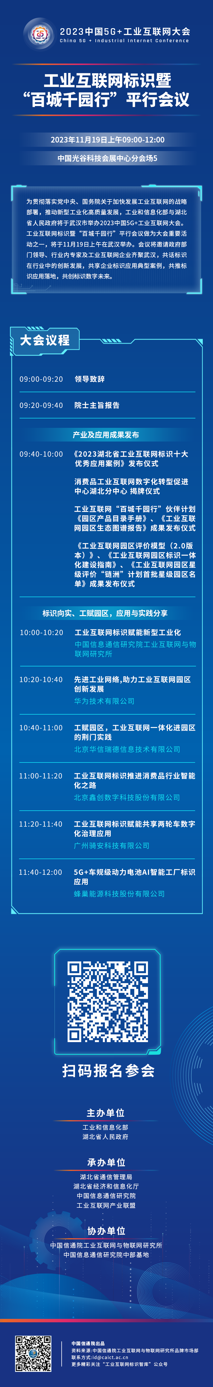 議程速覽 | 2023中國5G+工業(yè)互聯(lián)網(wǎng)大會工業(yè)互聯(lián)網(wǎng)標(biāo)識暨“百城千園行”平行會議