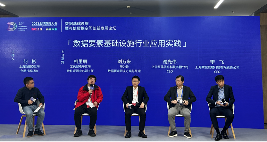 在“數(shù)據(jù)要素基礎(chǔ)設(shè)施行業(yè)應(yīng)用實(shí)踐”圓桌對(duì)話中,上海數(shù)據(jù)交易所創(chuàng)新技術(shù)總監(jiān)何彬、工信部電子五所軟件評(píng)測中心副主任相里朋、華為云數(shù)據(jù)要素解決方案總經(jīng)理劉萬來、上海紅陣信息科技有限公司CEO謝光偉、上海數(shù)據(jù)發(fā)展科技有限責(zé)任公司CEO李飛等嘉賓參與研討,嘉賓們從不同角度分享如何利用各自優(yōu)勢技術(shù)來構(gòu)建現(xiàn)代化的數(shù)據(jù)要素基礎(chǔ)設(shè)施。