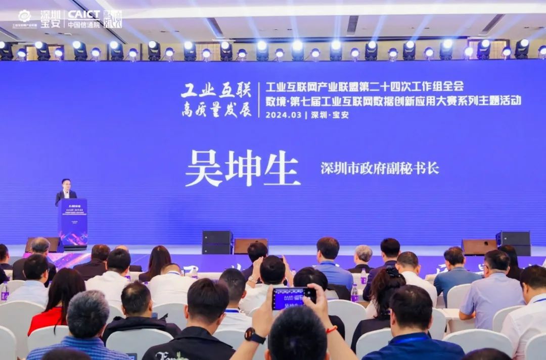 工業互聯網產業聯盟(以下簡稱“聯盟/AII”)第二十四次工作組全會和數境·第七屆工業互聯網數據創新應用大賽主題活動于2024年3月26日在深圳寶安拉開序幕。本次會議由工業互聯網產業聯盟、深圳市寶安區人民政府、中國信息通信研究院聯合主辦。國家制造強國建設戰略咨詢委員會副主任、工業和信息化部原副部長蘇波,工業和信息化部信息通信管理局一級巡視員王鵬,深圳市政府副秘書長吳坤生,寶安區委副書記、區長王立德出席全會第一次全體會議并致辭,中國工程院院士、華中科技大學教授李培根,中國信息通信研究院總工程師魏然,深圳華制智能制造技術有限公司董事長夏妍娜發表主題演講。