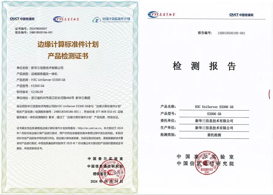 近日,由新華三集團自主研發的H3C UniServer E3300 G6智能邊緣服務器,通過中國信通院及泰爾實驗室“邊緣計算標準件計劃”產品測試。報告顯示,E3300 G6在性能、兼容性、可靠性、運維管理和安全等29項測試中均達到標準,成績優異。目前,E3300 G6已在邊緣云、新能源發電、工業互聯網等領域應用部署,為企業提供強大的智能邊緣算力。