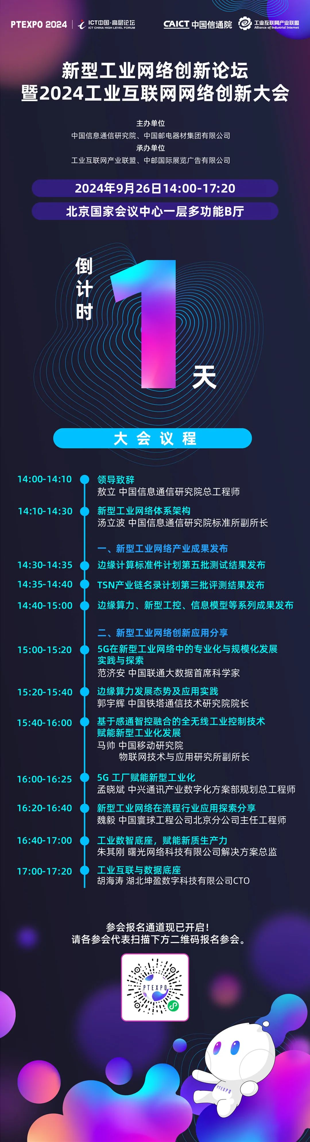 倒計時1天!新型工業網絡創新論壇暨2024工業互聯網網絡創新大會邀您參會