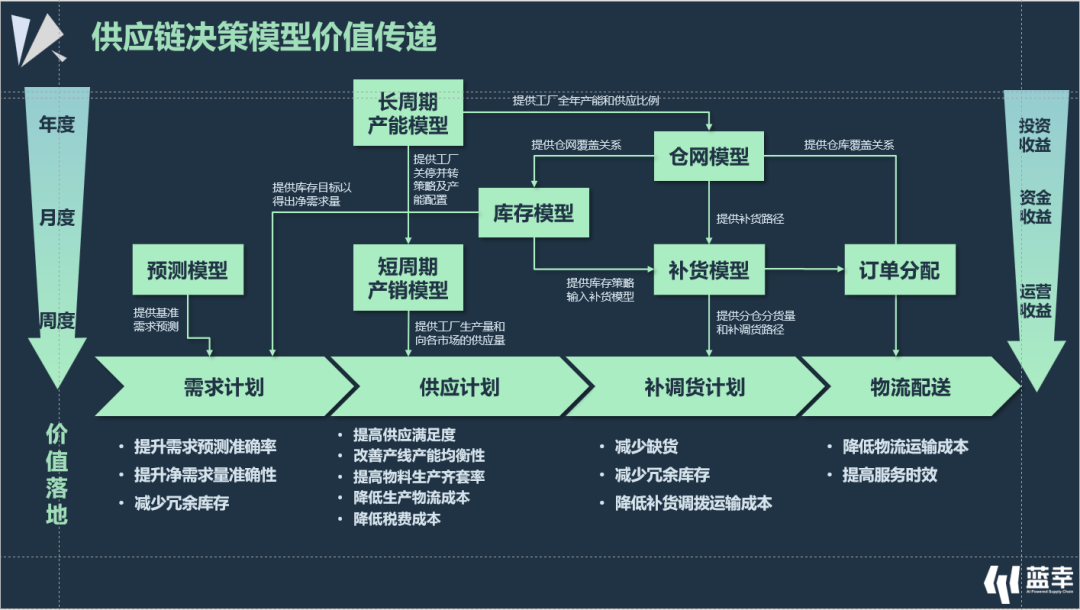 ?藍幸軟件聯合創始人COO王健:供應鏈優化到底如何開展一直是困擾各大企業的難題。藍幸借助10多年的超百家頭部企業的項目實施經驗,認為供應鏈優化需自上而下進行,因為上層的規則會對下層的計劃產生很大的影響,如:庫存策略會對主計劃產生影響。所以如何自上向下優化供應鏈是企業供應鏈優化能力建設必須回答的問題。本次分享將圍繞自上而下的供應鏈優化能力如何建設,介紹具體實施方法和成功實踐案例。