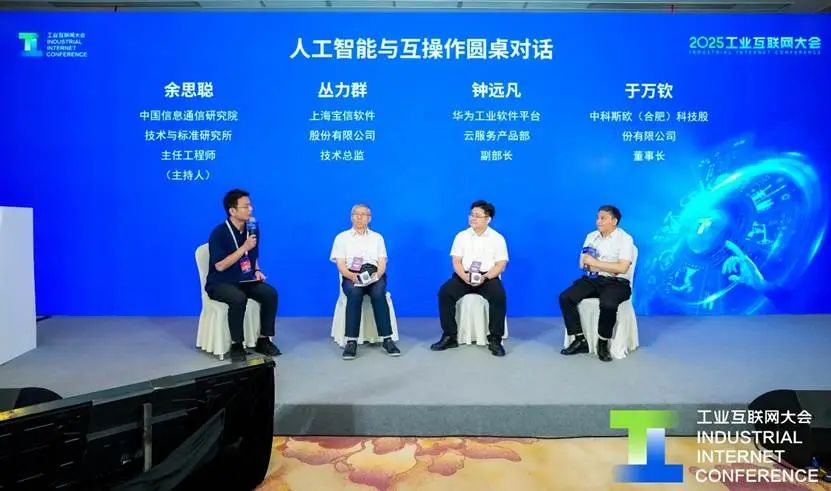 在圓桌對話環(huán)節(jié),中國信息通信研究院技術(shù)與標(biāo)準(zhǔn)研究所主任工程師余思聰、上海寶信股份有限公司技術(shù)總監(jiān)叢力群、華為工業(yè)軟件平臺云服務(wù)產(chǎn)品部副部長鐘遠凡、中科斯歐(合肥)科技股份有限公司董事長于萬欽就工業(yè)互聯(lián)網(wǎng)與人工智能的融合路徑、數(shù)據(jù)治理挑戰(zhàn)以及AI時代工業(yè)智能化發(fā)展策略等熱點話題進行了探討。