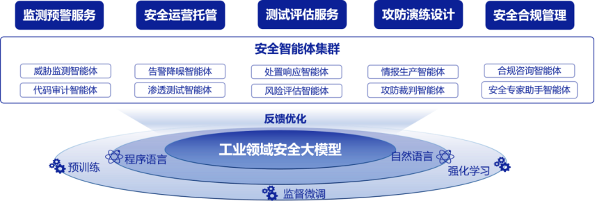 當(dāng)前,大模型、人工智能技術(shù)正在加速向各行各業(yè)賦能,帶動(dòng)傳統(tǒng)產(chǎn)業(yè)向智能化、數(shù)字化深度演進(jìn),與此同時(shí),工業(yè)領(lǐng)域網(wǎng)絡(luò)和數(shù)據(jù)安全形勢(shì)日益復(fù)雜,傳統(tǒng)技術(shù)手段難以滿(mǎn)足現(xiàn)階段安全防護(hù)需求。在此背景下,中國(guó)信息通信研究院依托工業(yè)互聯(lián)網(wǎng)安全技術(shù)試驗(yàn)與測(cè)評(píng)工業(yè)和信息化部重點(diǎn)實(shí)驗(yàn)室,基于工業(yè)領(lǐng)域網(wǎng)絡(luò)安全和數(shù)據(jù)安全垂域大模型,結(jié)合多年安全領(lǐng)域的知識(shí)經(jīng)驗(yàn),打造了集安全監(jiān)測(cè)、滲透測(cè)試、安全合規(guī)管理等多種能力于一體的工業(yè)領(lǐng)域安全智能體公共服務(wù)平臺(tái)(以下簡(jiǎn)稱(chēng)平臺(tái)),旨在為工業(yè)企業(yè)構(gòu)筑起一道“智能感知、主動(dòng)防御”的安全屏障。
