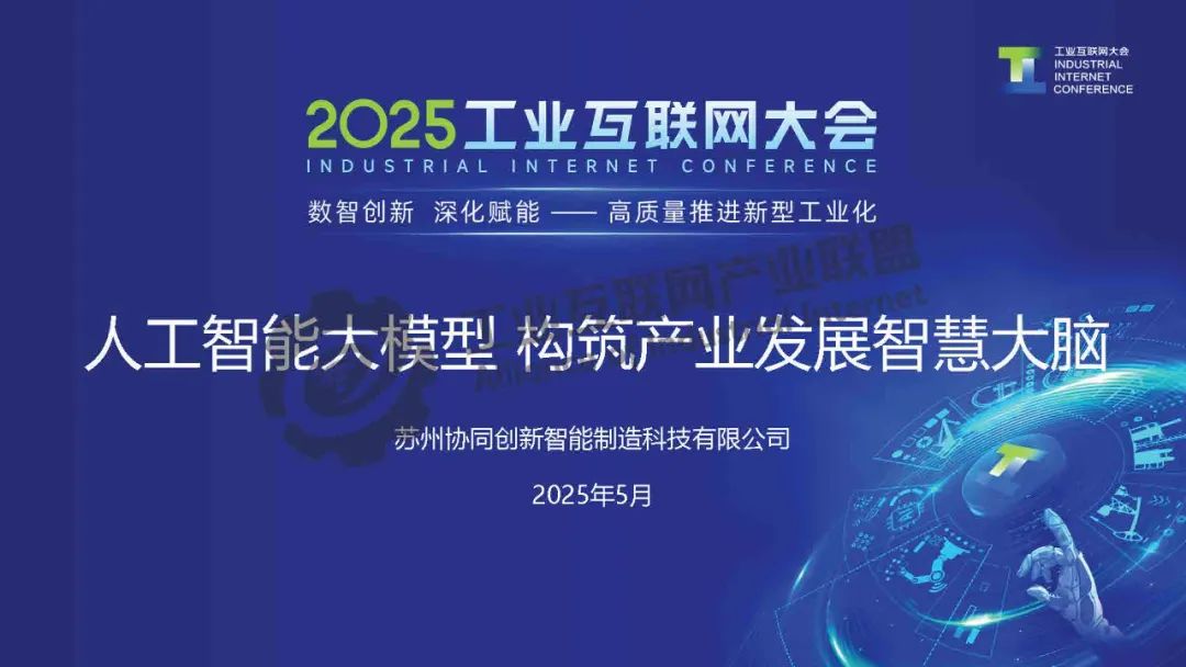 5月22日,在2025工業(yè)互聯網大會“人工智能與工業(yè)互聯網融合創(chuàng)新發(fā)展專題活動”上,蘇州協同創(chuàng)新智能制造科技有限公司總經理袁雪騰發(fā)表了《人工智能大模型 構筑產業(yè)發(fā)展智慧大腦》的主題演講。