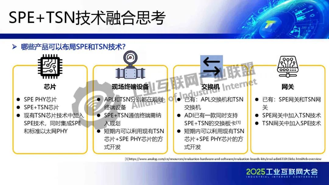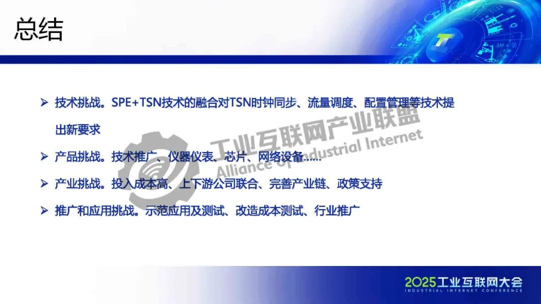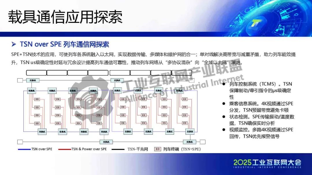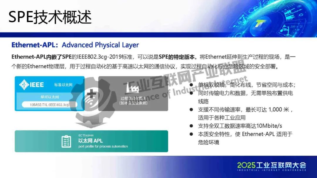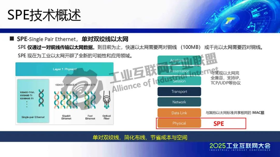 李慶介紹,TSN 提供確定性低時延通信保障,為各類系統建立統一的工業骨干網絡。SPE將以太網覆蓋范圍擴展至現場層,實現設備全連接,構建起真正統一的工業網絡。SPE+TSN的融合可降低布線成本、簡化設備聯網架構,為未來各行業智能化、實時化通信提供新的技術路徑。