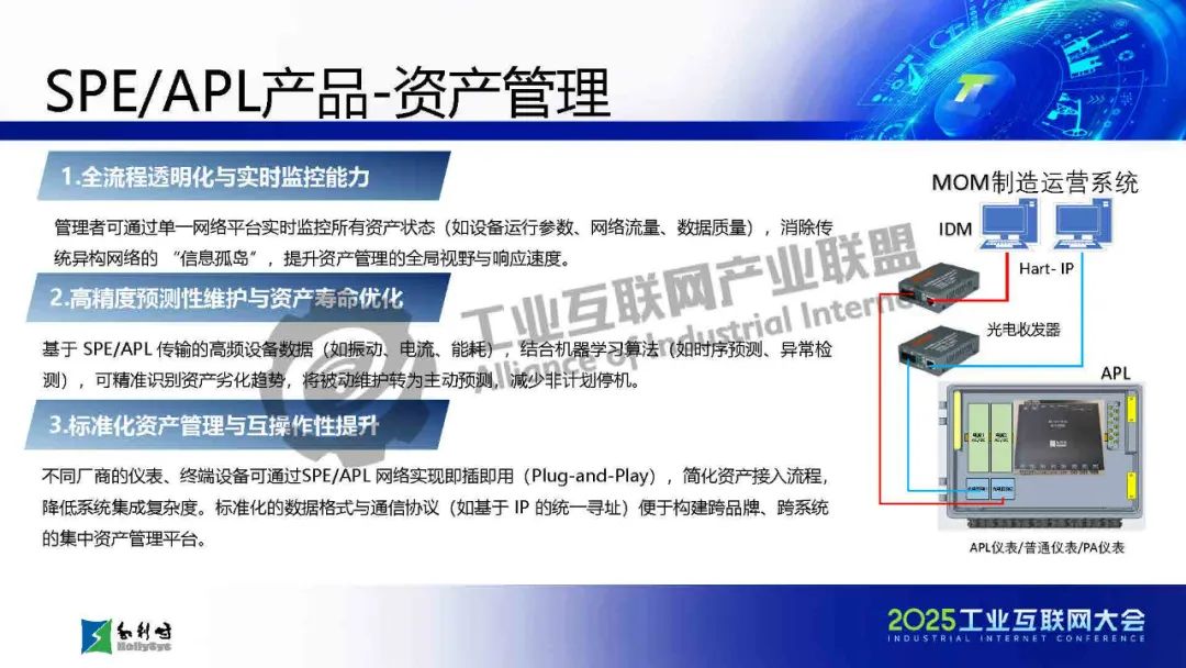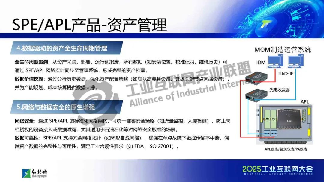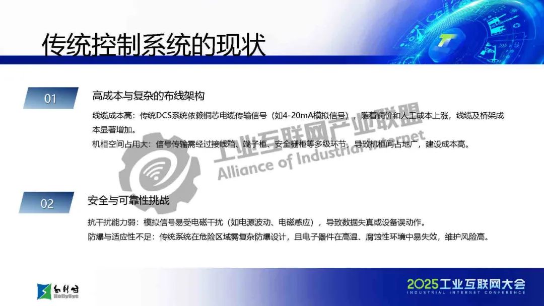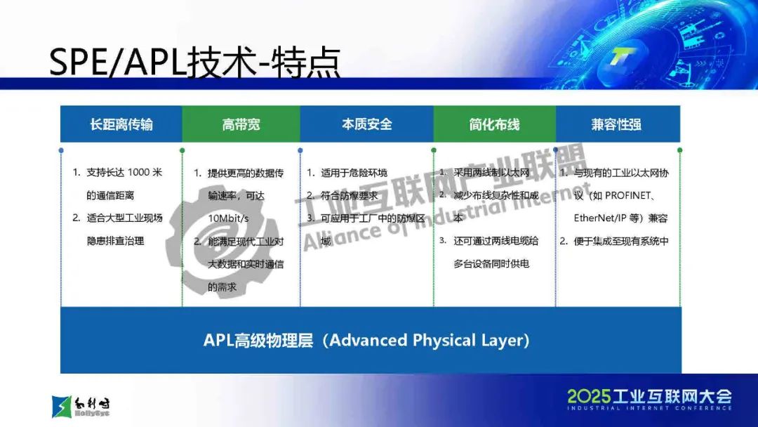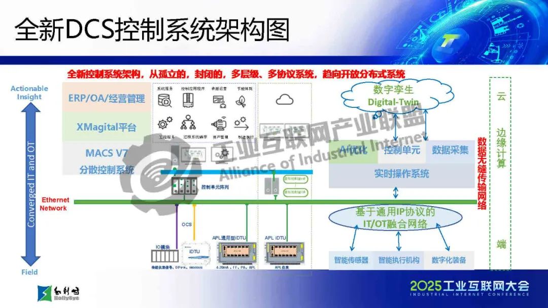 馬曉偉介紹,傳統工業通信面臨布線復雜、協議碎片化、帶寬不足等挑戰,而SPE/APL技術通過單對以太網和高級物理層創新,實現了千米級傳輸、10Mbps高帶寬、本質安全和一網到底的架構,大幅簡化布線并提升兼容性。該技術已應用于石化、電力等流程工業,支持從現場設備到云端的全層級數據貫通。報告還展示了基于APL的新一代DCS架構和七大系列產品,并指出未來發展方向:融合TSN增強實時性、構建開放生態、推動綠色低碳,以及結合AI實現預測性維護。最后強調國產化芯片和極端環境適配是技術落地的關鍵挑戰。SPE/APL技術將助力工業通信向智能化、標準化和可持續方向演進。
