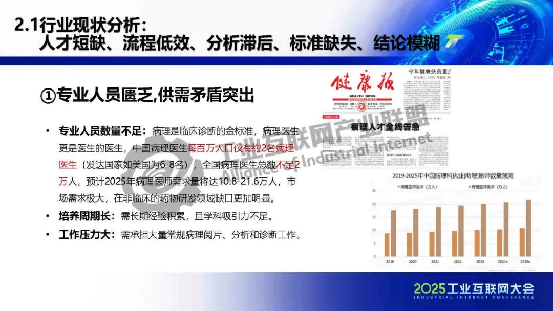 5月21日,在2025工業互聯網大會“工業互聯網產融合作專題活動”上,北京生仝智能科技有限公司項目總監房露發表了《AI助力數智病理持續創新》的主題演講。