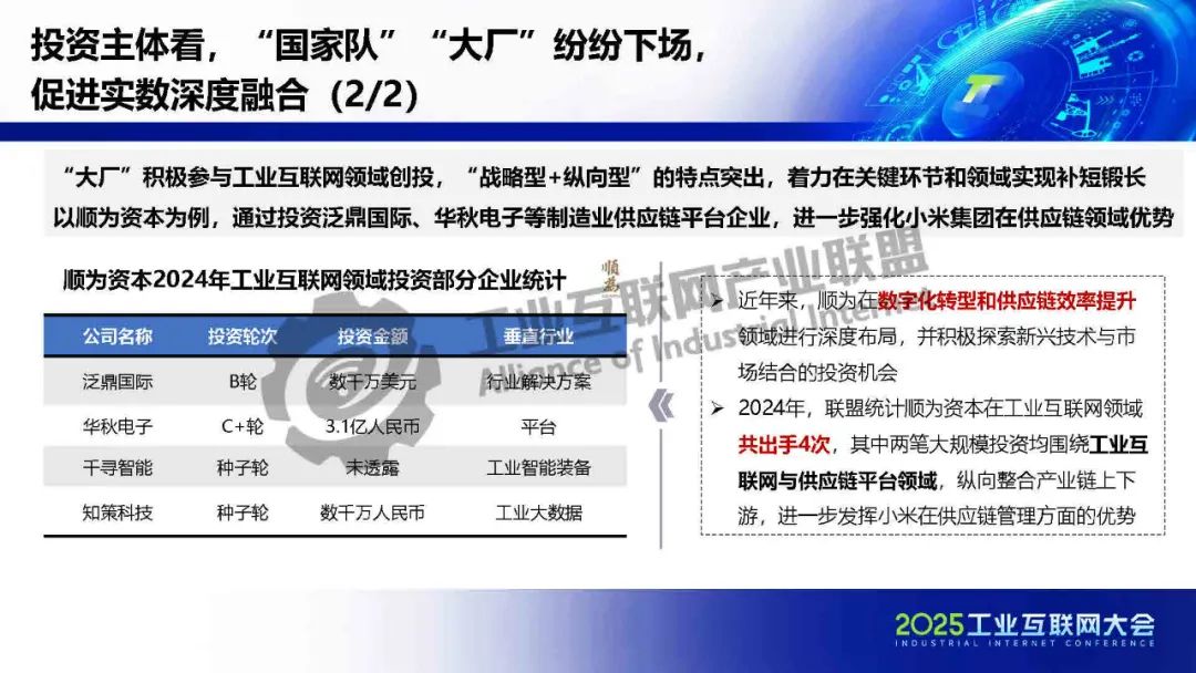 5月21日,在2025工業(yè)互聯(lián)網(wǎng)大會(huì)“工業(yè)互聯(lián)網(wǎng)產(chǎn)融合作專題活動(dòng)”上,工業(yè)互聯(lián)網(wǎng)產(chǎn)業(yè)聯(lián)盟政策法規(guī)與投融資組主席、中國信息通信研究院政策與經(jīng)濟(jì)研究所副所長肖榮美發(fā)表了《2024年中國工業(yè)互聯(lián)網(wǎng)投融資報(bào)告——工業(yè)互聯(lián)網(wǎng)與金融 雙向賦能 共促發(fā)展》的主題演講。