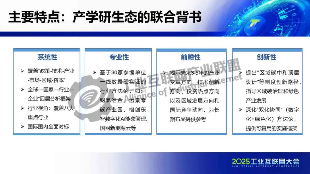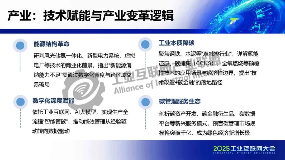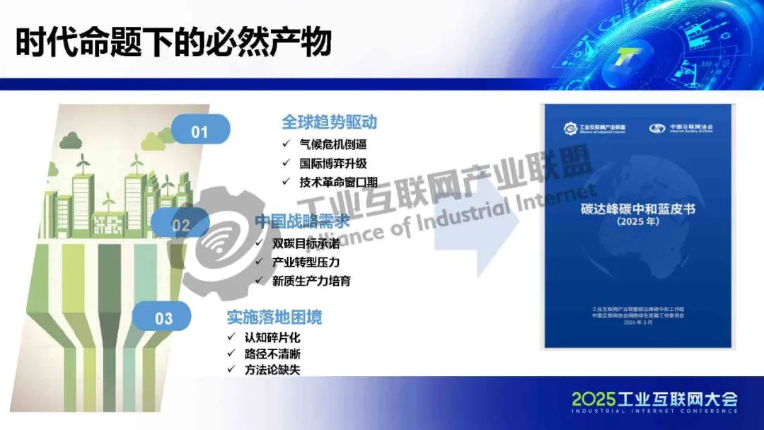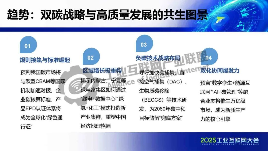 5月22日,在2025工業互聯網大會“工業數字化綠色化協同轉型專題活動”上,工業互聯網產業聯盟碳達峰碳中和工作組主席、中國信息通信研究院產業與規劃研究所總工程師高艷麗對《碳達峰碳中和藍皮書(2025)》進行了解讀。