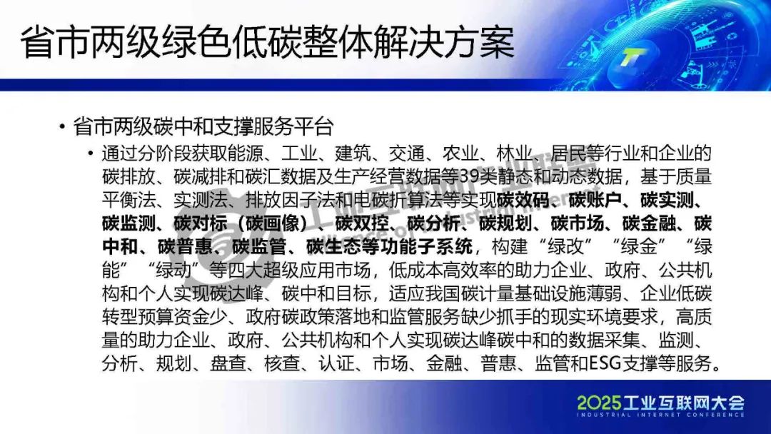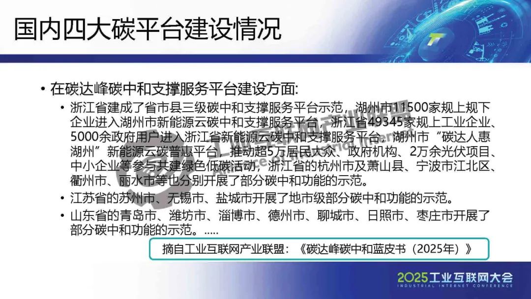 5月22日,在2025工業(yè)互聯(lián)網(wǎng)大會(huì)“工業(yè)數(shù)字化綠色化協(xié)同轉(zhuǎn)型專題活動(dòng)”上,工業(yè)互聯(lián)網(wǎng)產(chǎn)業(yè)聯(lián)盟碳達(dá)峰碳中和工作組副主席、許繼集團(tuán)有限公司首席專家、新能源云技術(shù)總監(jiān)、中國(guó)電促會(huì)雙碳專委會(huì)技術(shù)總監(jiān)張崇見(jiàn)發(fā)表了《高質(zhì)量建設(shè)四大雙碳平臺(tái),服務(wù)省市區(qū)域低碳綠色產(chǎn)業(yè)發(fā)展》的主題演講。