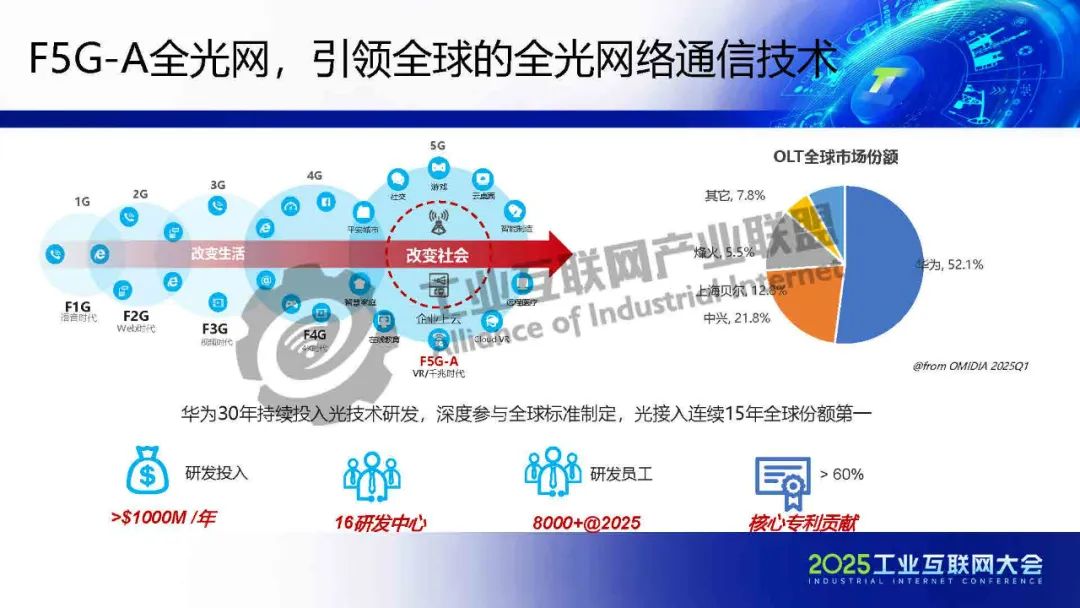 5月22日,在2025工業互聯網大會“工業數字化綠色化協同轉型專題活動”上,華為技術有限公司政企光接入總監龔奎發表了《F5G-A全光助力新型工業綠色高質發展》的主題演講。