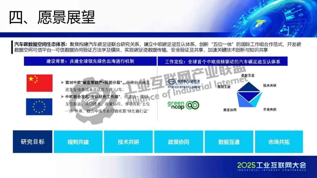 常維介紹,汽車碳數(shù)據(jù)空間生態(tài)體系將按照最新政策標(biāo)準(zhǔn)要求,進(jìn)一步與鋼鐵、有色、電池、石化等相關(guān)行業(yè)機(jī)構(gòu)開展合作,推動(dòng)上下游廣泛的數(shù)據(jù)互信與認(rèn)可。該生態(tài)體系聚焦構(gòu)建汽車碳足跡聯(lián)合研究關(guān)系,建立中歐碳足跡互認(rèn)體系,創(chuàng)新“五位一體”的國際工作組合作范式,開發(fā)碳數(shù)據(jù)空間可信平臺(tái),實(shí)現(xiàn)碳足跡數(shù)據(jù)傳輸、安全驗(yàn)證及共享,加速關(guān)鍵技術(shù)創(chuàng)新與知識(shí)共享。