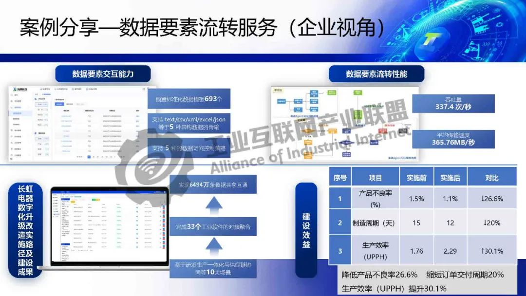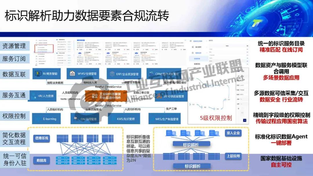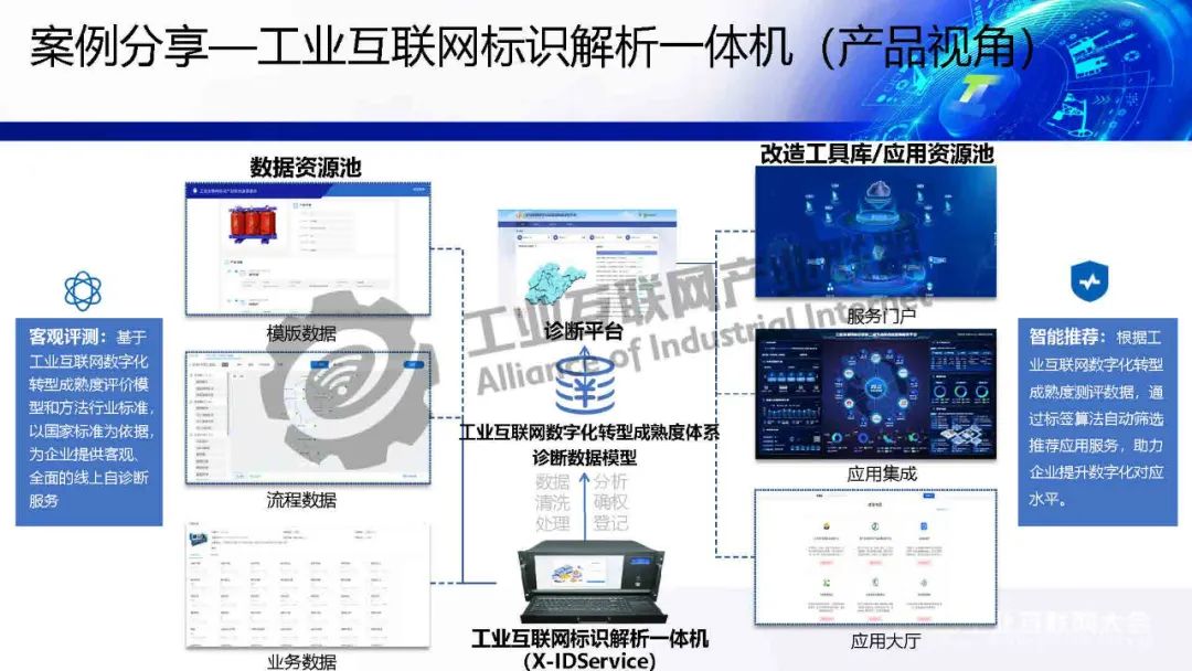 狄航介紹,標識解析驅動數(shù)據(jù)要素產品服務新模式的核心是通過標識解析驅動數(shù)據(jù)要素服務,提供數(shù)據(jù)集成工具、服務底座和改造能力,助力企業(yè)數(shù)字化轉型。典型案例包括光伏行業(yè)的綠證認證服務、跨平臺數(shù)據(jù)互通中間件以及工業(yè)互聯(lián)網標識解析一體機,顯著提升生產效率并降低不良率。