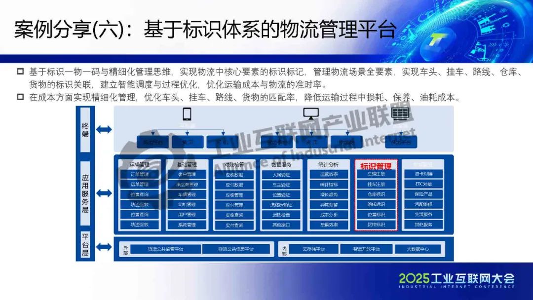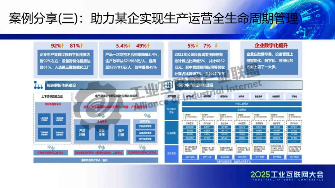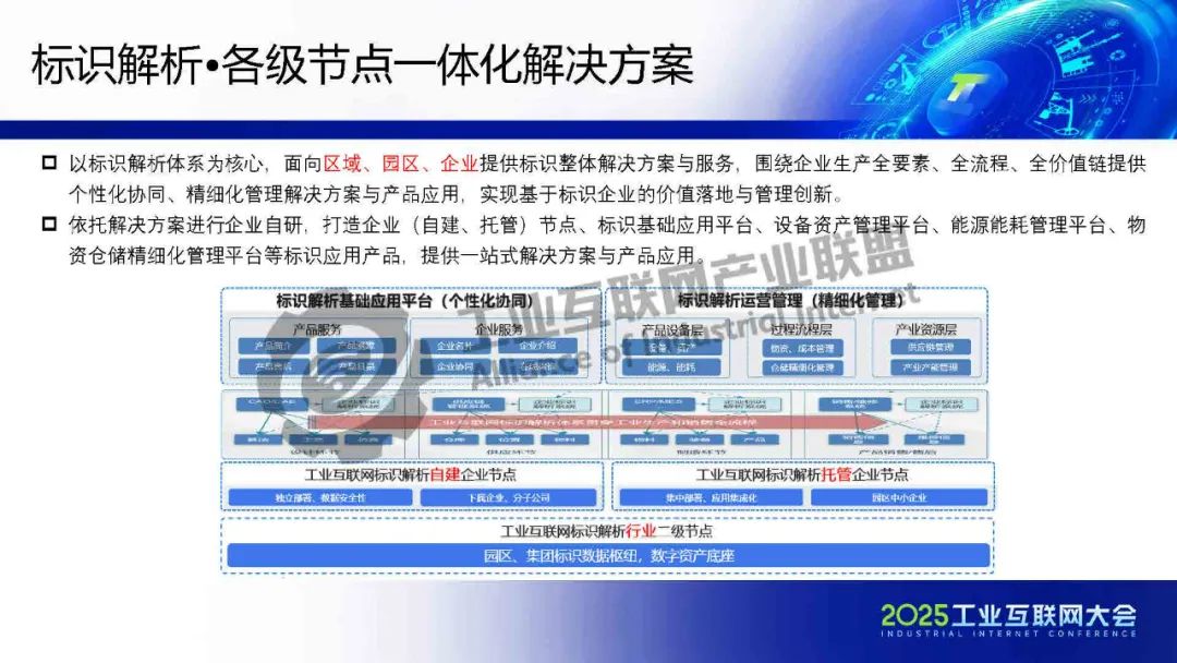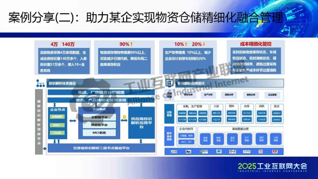 張全都介紹,亞信科技通過“星火標識×”計劃,提供標識解析一體化服務,包括二級節點規劃、企業節點建設及兩化改造等,助力企業實現全要素、全流程的精細化管理。案例涵蓋船舶行業標識服務體系、物資倉儲管理、生產運營生命周期管理、中小企業數字化底座、能源能耗管理、物流平臺及數字孿生應用,展示了標識解析在多個領域的落地成效。