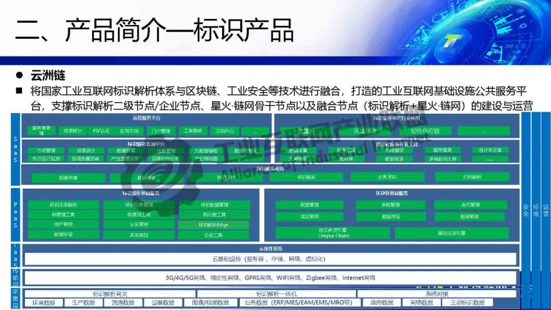 云洲鏈將國家工業互聯網標識解析體系與區塊鏈、工業安全等技術進行融合,打造工業互聯網基礎設施公共服務平臺,支撐標識解析二級節點、企業節點、星火·鏈網骨干節點以及融合節點的建設與運營。
