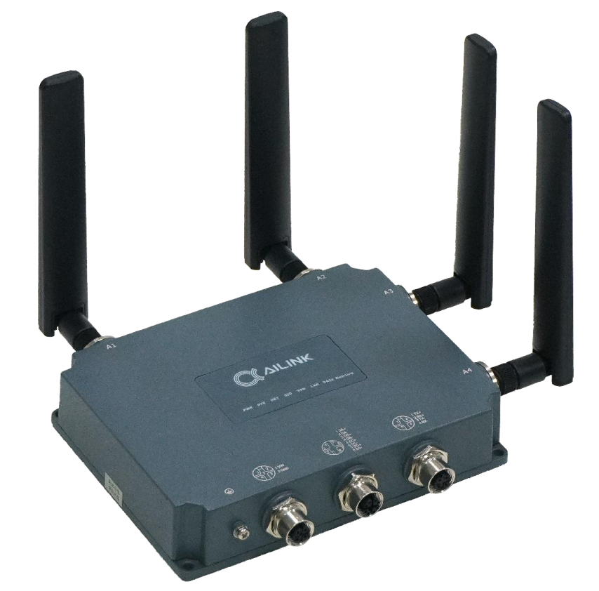 UE1220通過(guò)M12接口連接產(chǎn)線PLC(主/從站),部署雙5G模組接入艾靈5G專網(wǎng)。