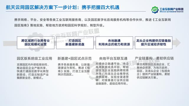 航天云網(wǎng)率先在四川落地工業(yè)互聯(lián)網(wǎng)園區(qū)平臺(tái),服務(wù)政府、園區(qū)和入駐企業(yè)。幫助政府實(shí)現(xiàn)精準(zhǔn)治理和培育、園區(qū)科學(xué)規(guī)劃、精準(zhǔn)招商,實(shí)現(xiàn)企業(yè)全生命周期管理,把握跨區(qū)域跨行業(yè)的規(guī)模化運(yùn)營機(jī)遇。未來,還將攜手網(wǎng)絡(luò)、平臺(tái)、安全等各類工業(yè)互聯(lián)網(wǎng)服務(wù)商,以及園區(qū)數(shù)字化咨詢服務(wù)機(jī)構(gòu)等合作伙伴,推進(jìn)《工業(yè)互聯(lián)網(wǎng)園區(qū)指南》落地實(shí)施,幫助地方政府和園區(qū)科學(xué)規(guī)劃、轉(zhuǎn)型升級(jí)。