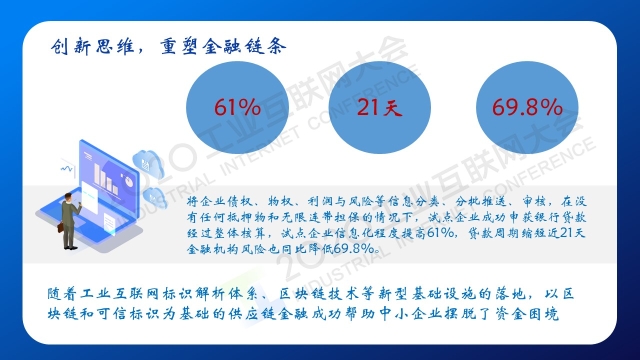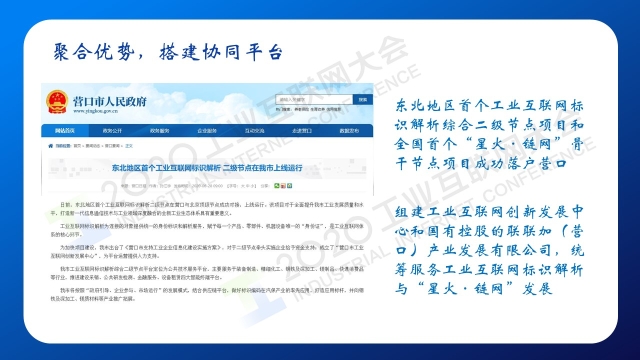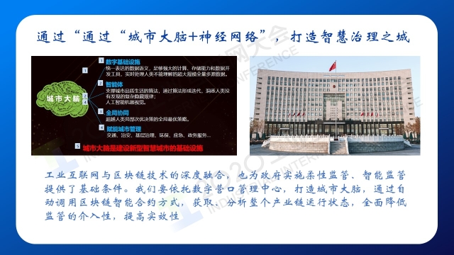 點擊以下鏈接查看演講視頻: 專家說 “營口將發揮好“船小好調頭”的特點,在工業互聯網、區塊鏈等技術、新模式上創新探索,努力形成典型經驗,為東北地區乃至全國提供有價值的樣本參考。一是通過標識解析+區塊鏈,打造智能制造之城;二是通過VR+虛擬園區,打造虛擬現實之城;三是通過可信標識+數字貨幣,打造數字金融之城;四是通過城市大腦加神經網絡,打造智慧治理之城?!?/p> 以下是演講PPT 敬請閱讀