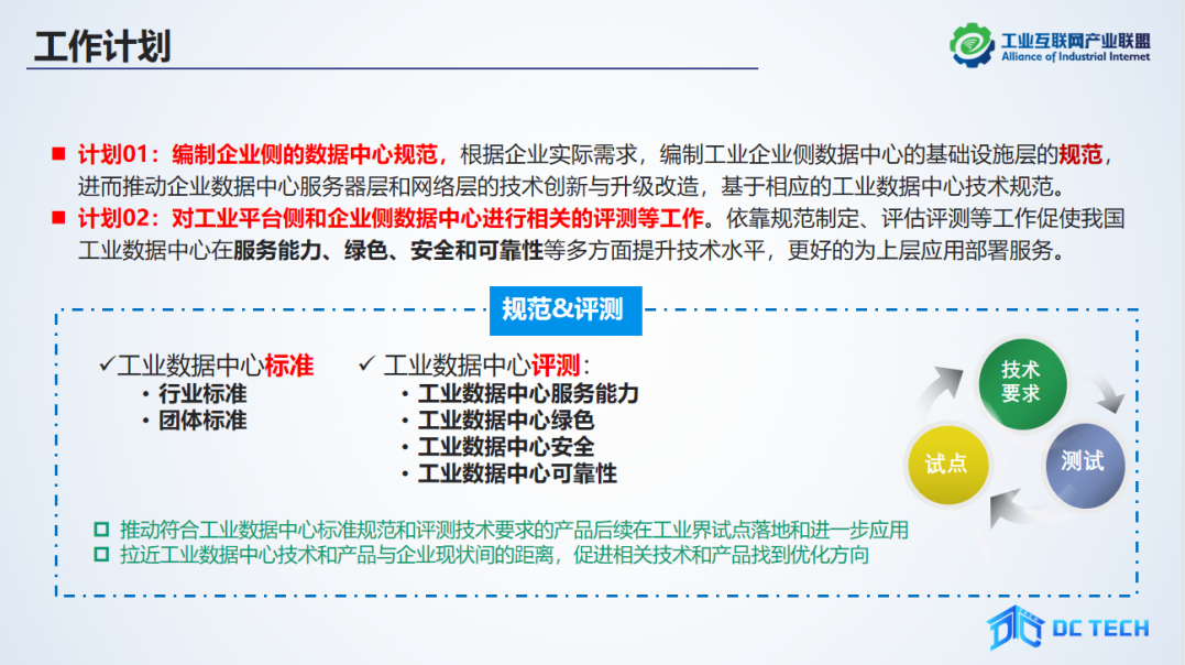 下一步,工業數據中心特設組將繼續推動工業數據中心行業和團體標準研制,加快完善服務能力、綠色、安全、可靠性評測體系,持續深化工業技術產品試點應用。