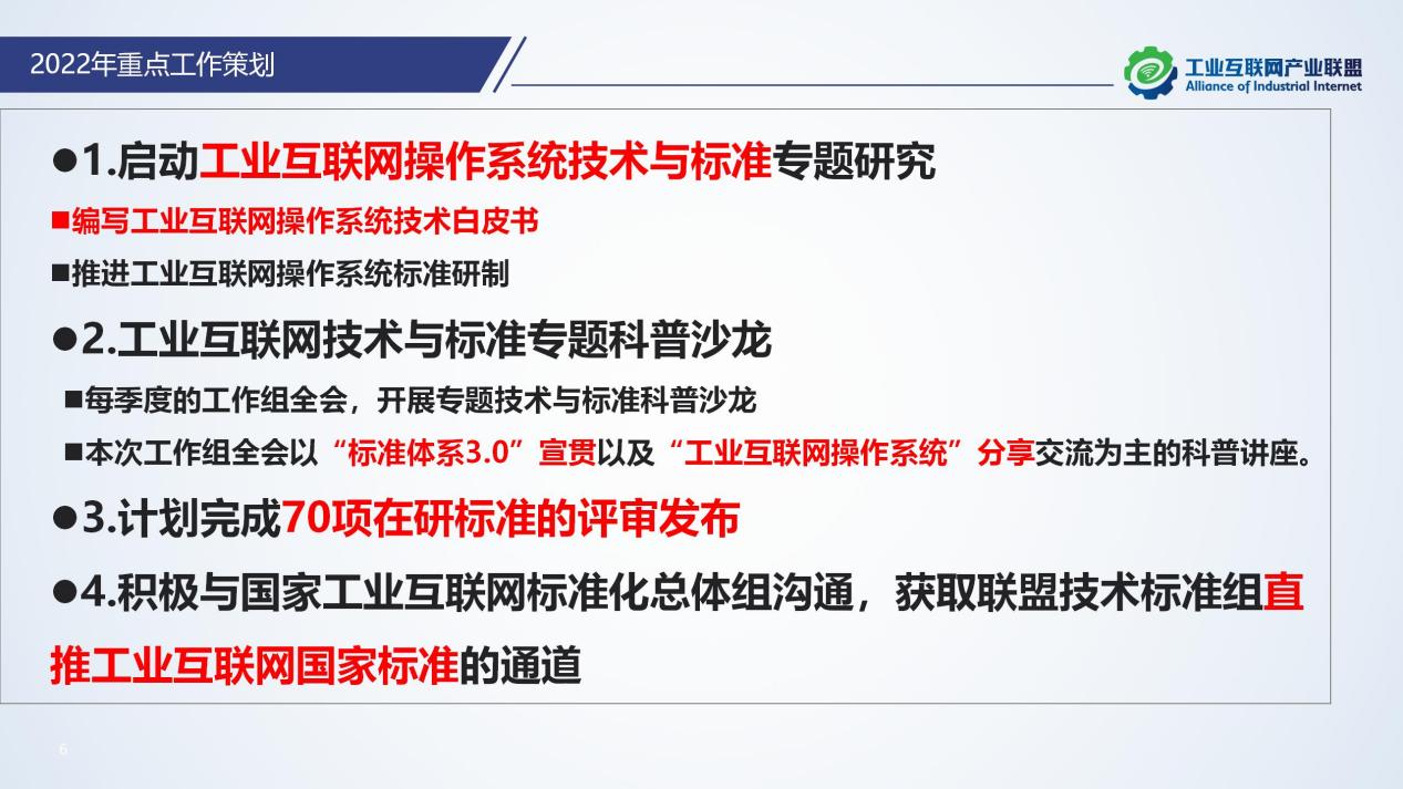 技術與標準組會議由航天云網平臺研發部副部長于文濤主持。會上,于文濤分享了“航天云網平臺操作系統研究進展”,并發起“工業互聯網操作系統”前沿技術研究及相關白皮書編制的倡議。與會專家、聯盟成員針對“工業互聯網操作系統”概念與理論積極發言與研討。隨后,在聯盟《工業互聯網標準體系(版本3.0)》指導下,對本年度第一批征集的聯盟標準立項建議進行了現場答辯及評審,共有《工業數字孿生測試驗證要求》、《工業互聯網標識解析 燃氣設備材料 元數據》等10余項標準通過立項,涉及的重點熱點領域包括標識解析、數字孿生、安全、工業互聯網園區等。截止目前,已發布聯盟標準44項,在研標準近140項。本次會議內容豐富,研討熱烈,工業互聯網前沿技術研究的牽引力增強,聯盟標準成果豐碩,工業互聯網技術與標準的關注度持續升高。