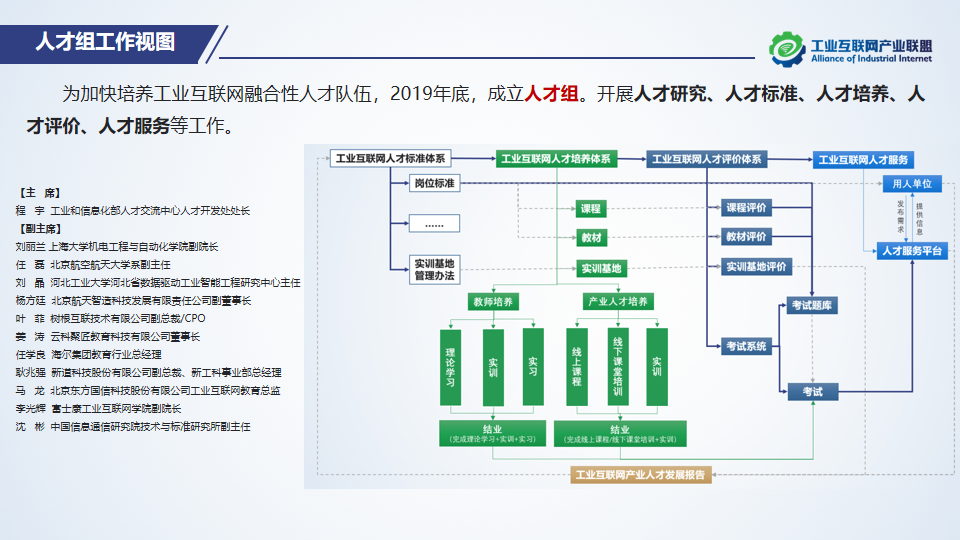 人才組會議由副主席劉麗蘭主持。會上,工業和信息化部人才交流中心介紹了產教融合型專業建設試點院校的相關工作的進展情況。北京華航唯實機器人科技股份有限公司專家從企業實際崗位需求、人才培訓就業意愿雙向出發,介紹產教融合型實訓基地建設模式和創新性課程設計。上海朋禾智能科技有限公司、無錫泛太科技有限公司、廣東精工智能系統有限公司的專家分享了各自在工業互聯網產業人才培養方面的實踐經驗。本次會議還邀請到聯盟工業大數據特設組專家趙志海,介紹產業大數據相關工作進展情況,與參會代表共同圍繞工業大數據人才需求進行深入探討。會議最后,程宇主席組織大家共同討論了人才組2022年工作計劃,擬在工業互聯網人才標準研制、人才培養案例征集、實訓基地建設、產教融合模式探索等方面進一步深化組內工作。