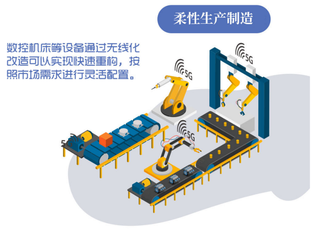 企業(yè)生產(chǎn)設(shè)備高度自動(dòng)化、智能化,生產(chǎn)線可根據(jù)要求進(jìn)行設(shè)備自主組合和參數(shù)自動(dòng)配置,現(xiàn)場(chǎng)實(shí)現(xiàn)5G網(wǎng)絡(luò)覆蓋,設(shè)備具有 5G 網(wǎng)絡(luò)接入能力。