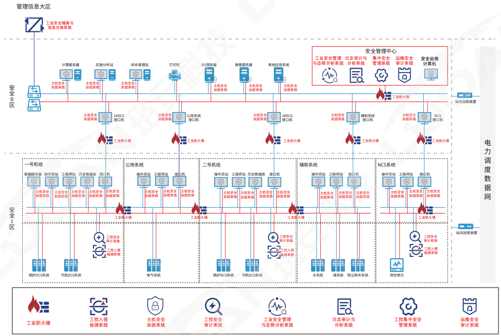 本方案主要是針對某火力發(fā)電廠的DCS系統(tǒng)、SIS系統(tǒng)等工控系統(tǒng)安全防護(hù)建設(shè)。