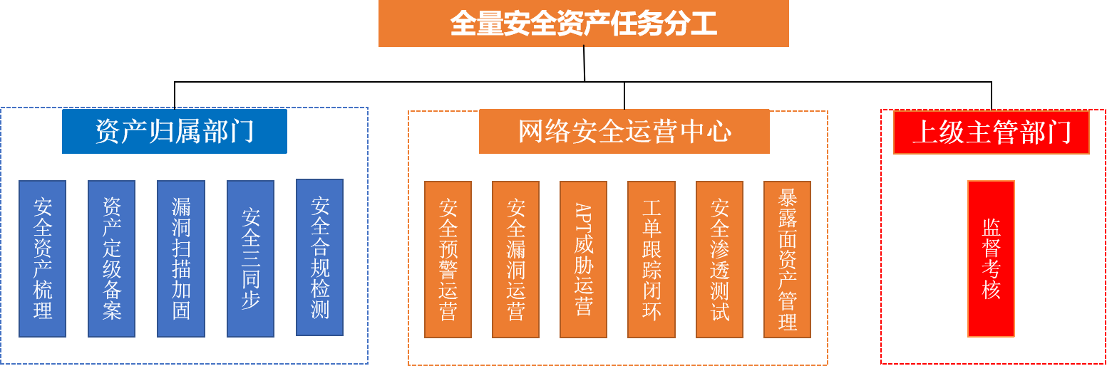 面向互聯(lián)網(wǎng)暴露面資產(chǎn),開展資產(chǎn)的統(tǒng)籌管理與報備更新,資產(chǎn)歸屬部門負網(wǎng)絡(luò)安全主體責(zé)任,網(wǎng)絡(luò)安全運營中心集中開展掃描滲透與預(yù)警跟蹤,上級主管部門負責(zé)監(jiān)督考核。各部門協(xié)作,嚴格落實網(wǎng)絡(luò)安全相關(guān)工作要求。