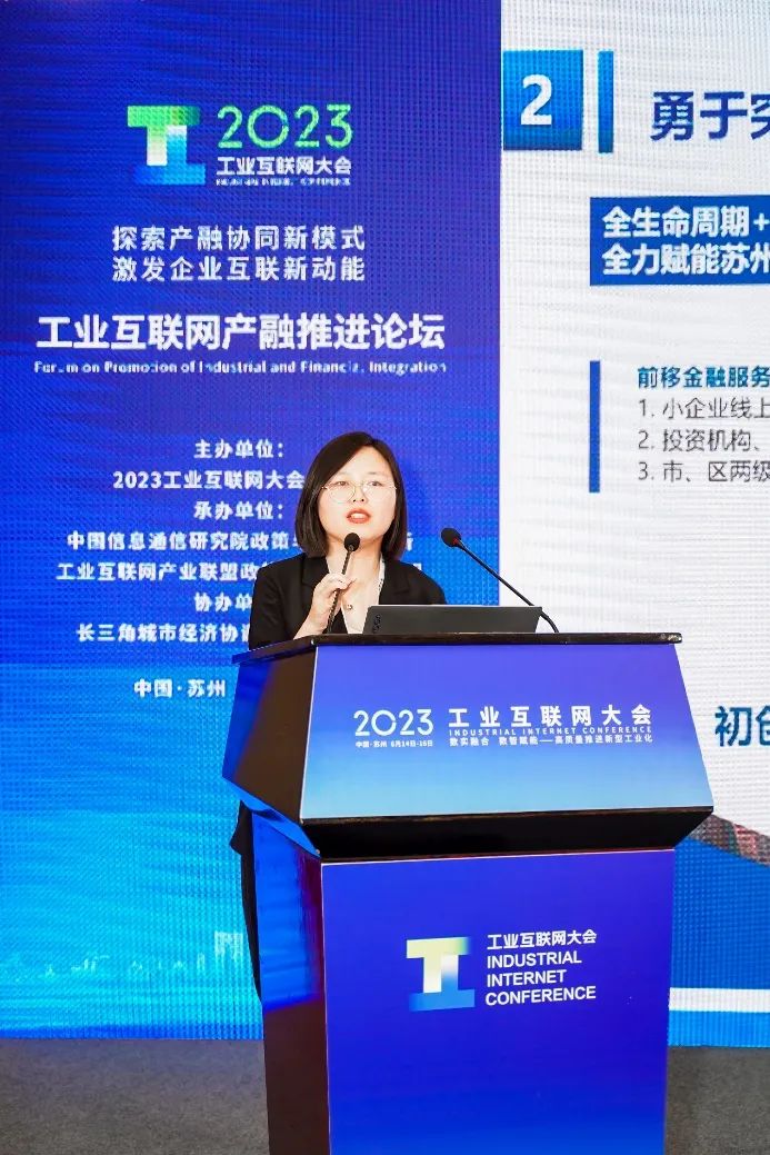 2023年6月14日,工業(yè)互聯(lián)網(wǎng)產(chǎn)融推進(jìn)分論壇在江蘇蘇州舉辦。本次論壇以“探索產(chǎn)融協(xié)同新模式 激發(fā)企業(yè)互聯(lián)新動(dòng)能”為主題,是2023工業(yè)互聯(lián)網(wǎng)大會(huì)的重要板塊。論壇由中國(guó)信息通信研究院、工業(yè)互聯(lián)網(wǎng)產(chǎn)業(yè)聯(lián)盟聯(lián)合承辦,長(zhǎng)三角城市經(jīng)濟(jì)協(xié)調(diào)會(huì)物聯(lián)網(wǎng)專委會(huì)、產(chǎn)融合作生態(tài)聯(lián)合創(chuàng)新計(jì)劃協(xié)辦。來自地方政府、高校院所、金融機(jī)構(gòu)和企業(yè)的專家學(xué)者參加了本次論壇。