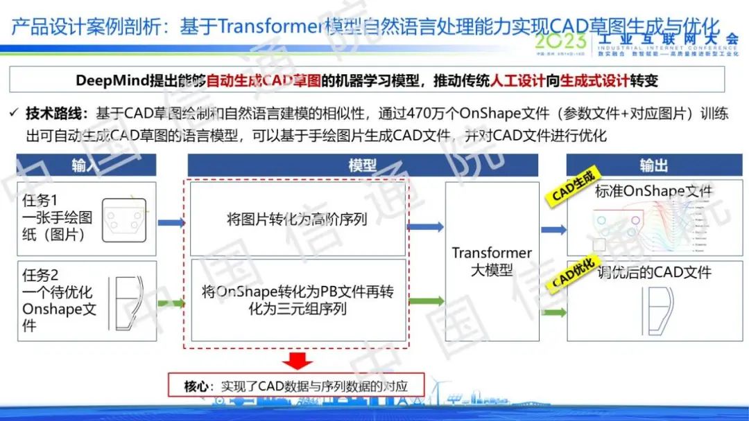 以產品設計場景為例,通過利用Transformer模型的自然語言處理能力提升研發效率。其本質是將輸入的CAD數據轉化為序列數據以充分適配Transformer模型,通過構建研發領域大模型實現CAD圖像生成與優化功能,這意味著傳統人工設計正加速向生成式設計轉變。
