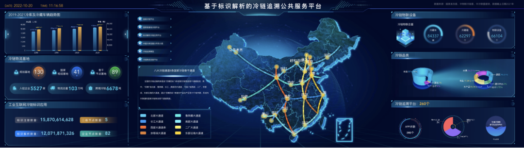 基于工業(yè)互聯(lián)網(wǎng)標(biāo)識解析的冷鏈物流追溯公共服務(wù)平臺(tái)包括冷鏈物流骨干基地的運(yùn)行情況監(jiān)測模塊、冷鏈物流設(shè)備運(yùn)行監(jiān)測模塊、冷庫狀態(tài)運(yùn)行監(jiān)測模塊、各省市冷鏈物流發(fā)展監(jiān)測模塊,并提供基于標(biāo)識解析的冷鏈產(chǎn)品追溯等公共服務(wù)能力。通過該平臺(tái),能夠有效打通冷鏈物流追溯全鏈條數(shù)據(jù)、實(shí)現(xiàn)全流程可追溯、支撐全國統(tǒng)計(jì)監(jiān)測,將極大賦能冷鏈物流產(chǎn)業(yè)的高質(zhì)量發(fā)展。