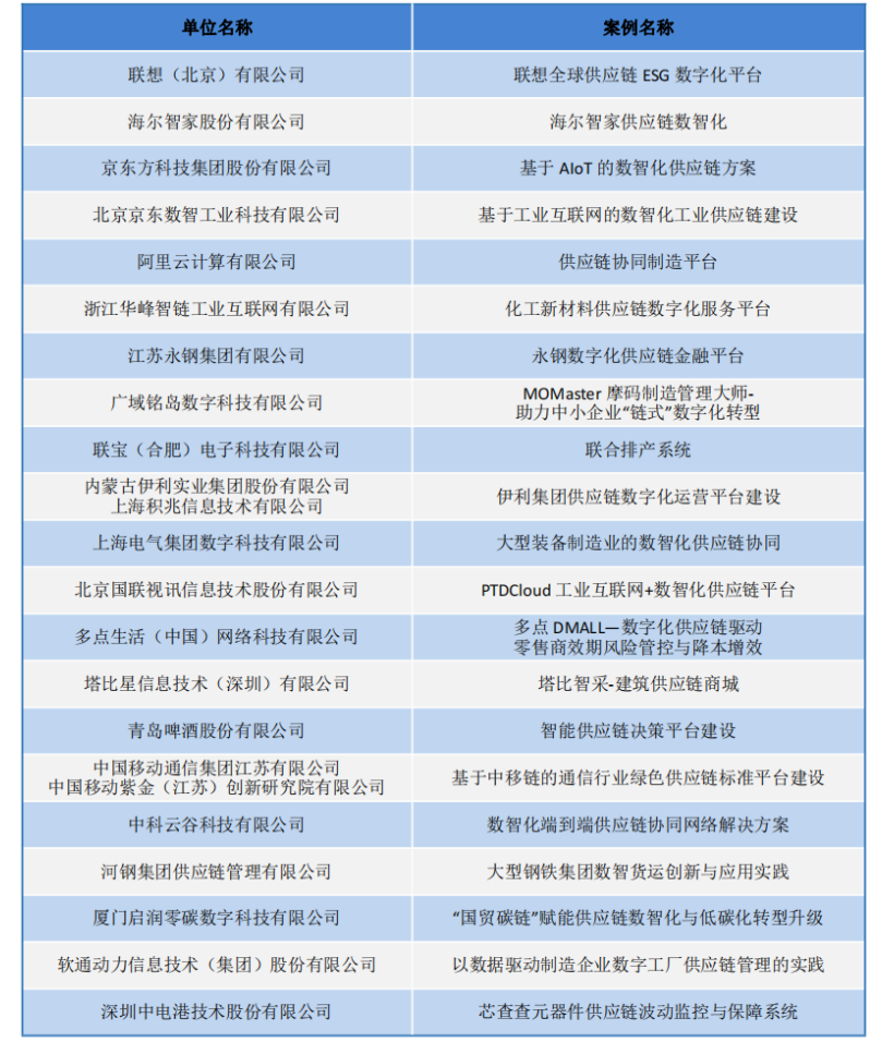 2023年數(shù)智化供應(yīng)鏈案例名單