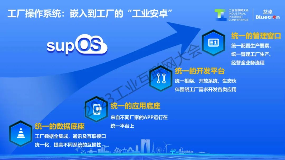 6月14日,在2023工業互聯網大會“工業互聯網助力企業數字化轉型高端論壇”上,藍卓數字科技有限公司CEO譚彰發表《數字工業新引擎 讓工業智能更簡單》主題演講。譚彰表示,早在2017年,藍卓便率先發布中國首個自主知識產權的工業操作系統——supOS。六年來,藍卓深耕行業,不斷提升平臺的厚度和深度,在各行各業規模化應用,不斷提升覆蓋業務域的廣度。目前,藍卓已在全國28個省市,30個行業,打造了4100多個新型智能工廠。其中,雅戈爾、鎮海煉化、海螺水泥評為國家級“數字領航企業”,并不斷揚帆出海賦能沙特阿美等國際知名企業。