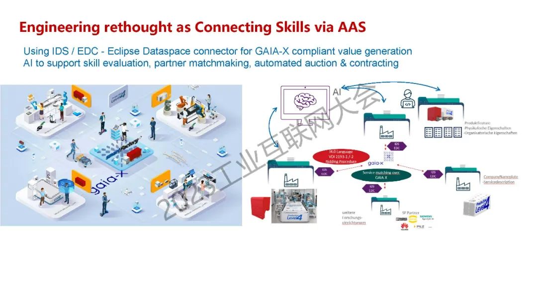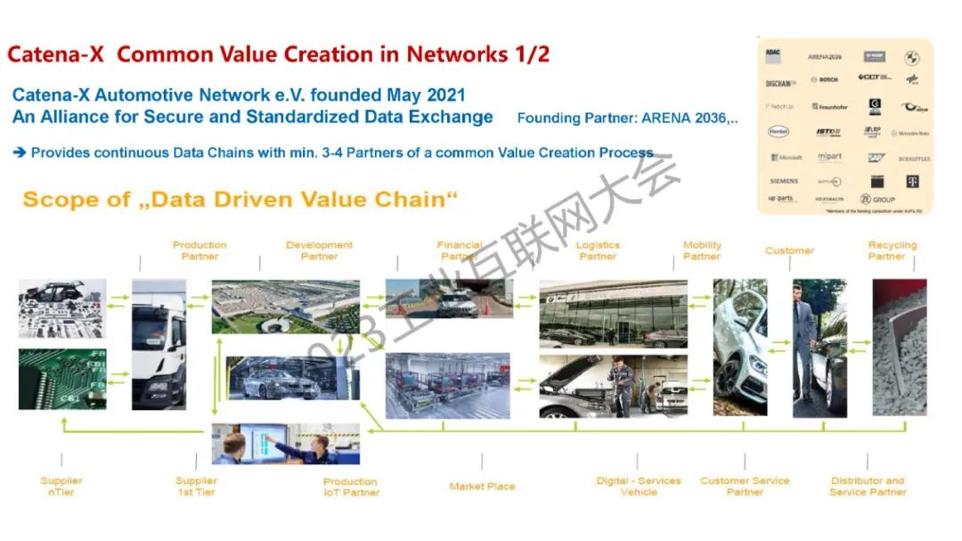 郭裕根介紹了工業領域的最新動向,提出自主性的核心就是提供數據空間服務,從而創造價值。同時也分享了基于數據共享的價值生成的關鍵應用案例,包括控制柜、共享生產智能 MA-X、Eclipse DataSpace 連接器等,最后介紹了汽車行業的工業創新,從材料供應到開發再到制造,合作伙伴、供應商和智能汽車客戶整合起來,還有回收商拆卸汽車零部件,實現材料循環利用。