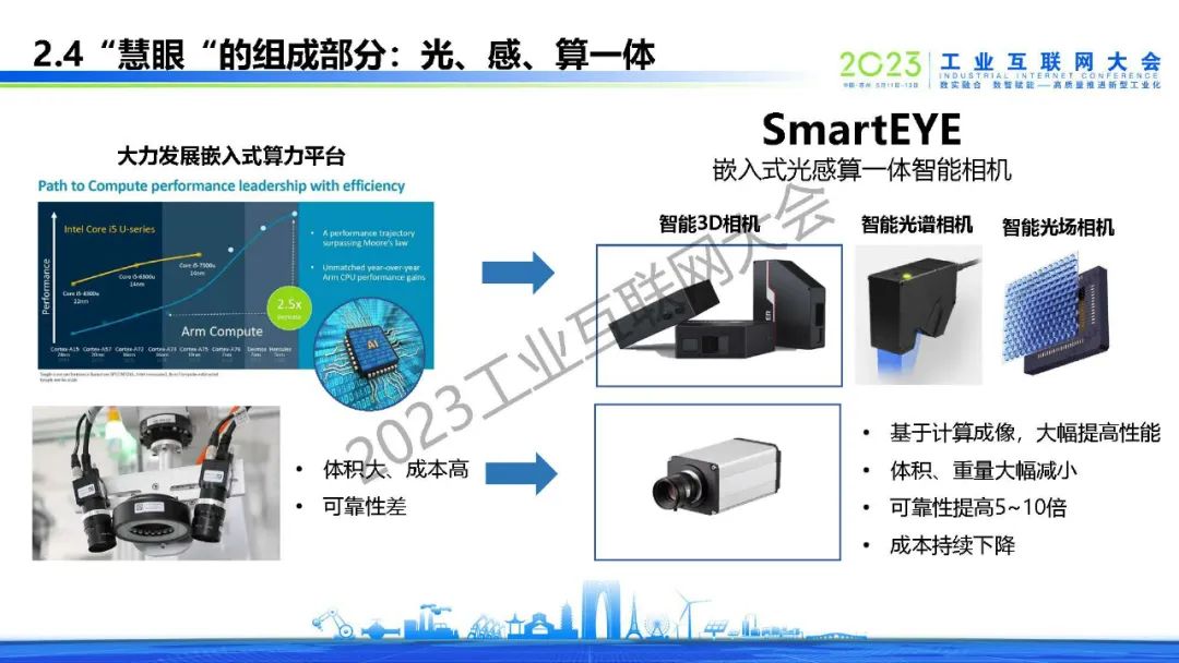 林杰分享智能制造產業趨勢和特征,指出了傳統制造型企業“智改數轉”的痛點,提出要為制造配上“慧眼”。他表示人工智能的飛速發展,為工業發展插上翅膀,通過“手眼腦”精確的協調和執行來解決問題。