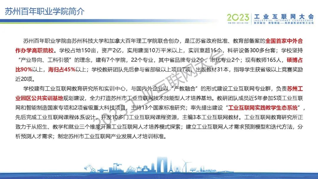 6月14日,在2023工業互聯網大會“工業互聯網人才發展論壇”上,蘇州百年職業教育學院院長魏磊發表了《工業互聯網職業教育的發展和思考》的主題演講。