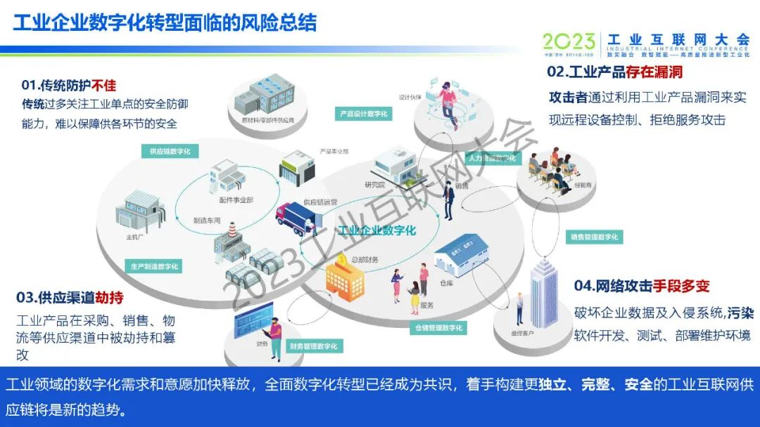 “工業領域的數字化需求和意愿加快釋放,全面數字化轉型已經成為共識。然而,工業企業面臨著傳統防護效果不佳、工業產品存在漏洞、工業產品在供應渠道中被劫持和篡改、網絡攻擊手段多變等風險,構建更獨立、完整、安全的工業互聯網供應鏈將是新的趨勢?!?/p>