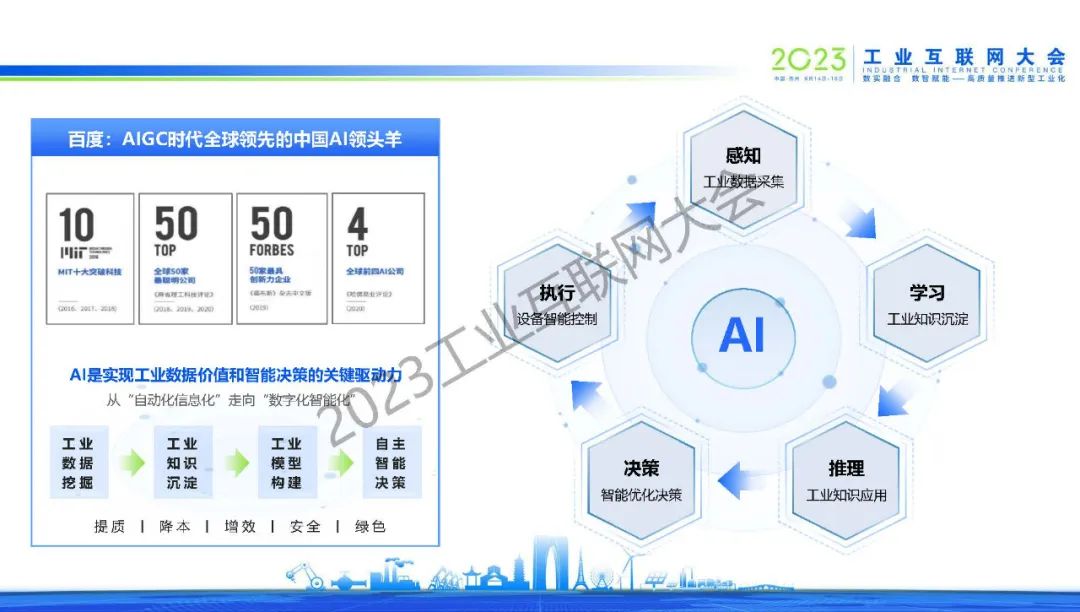6月14日,在2023工業互聯網大會“融合新模式、融入新工業論壇暨中國互聯網協會工業互聯網工作委員會第一屆委員會第二次全體成員會議”上,百度智能云產品委員會聯席主席、工業能源產品研發總經理黃鋒發表了《AI+工業互聯網,加速工業智能化升級》的演講。