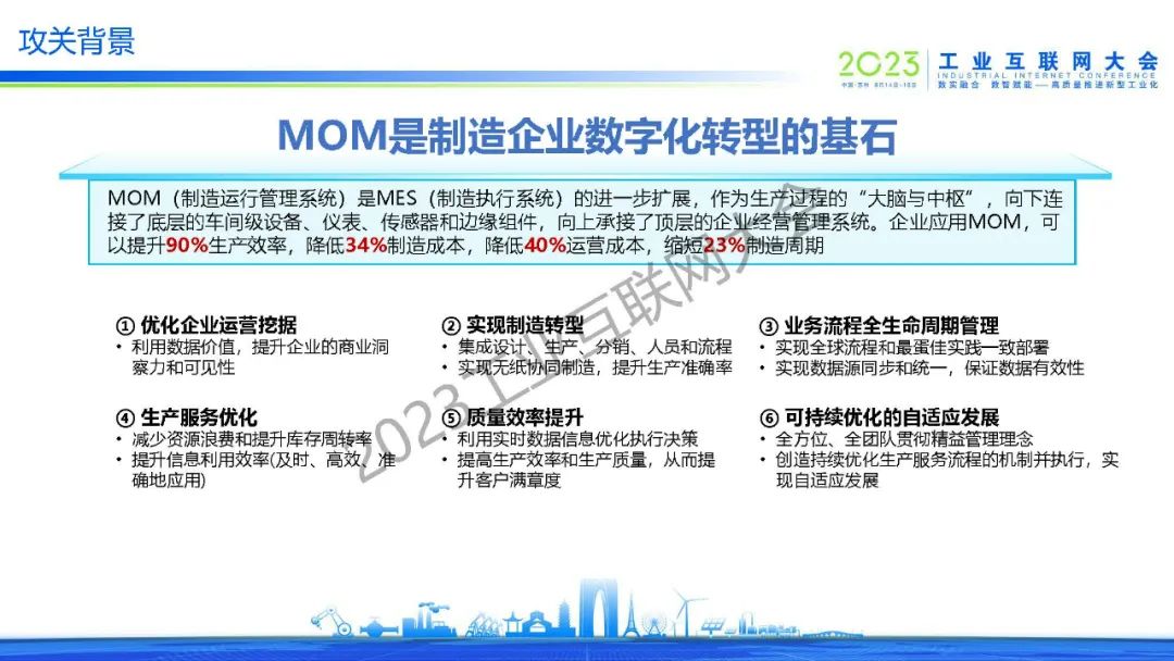 "MOM(制造運行管理系統(tǒng))是MES(制造執(zhí)行系統(tǒng))的進一步擴展,向下連接了底層的車間級設(shè)備、儀表、傳感器和邊緣組件,向上承接了頂層的企業(yè)經(jīng)營管理系統(tǒng),作為生產(chǎn)過程的“大腦與中樞”,MOM是制造企業(yè)數(shù)字化轉(zhuǎn)型的基石。"