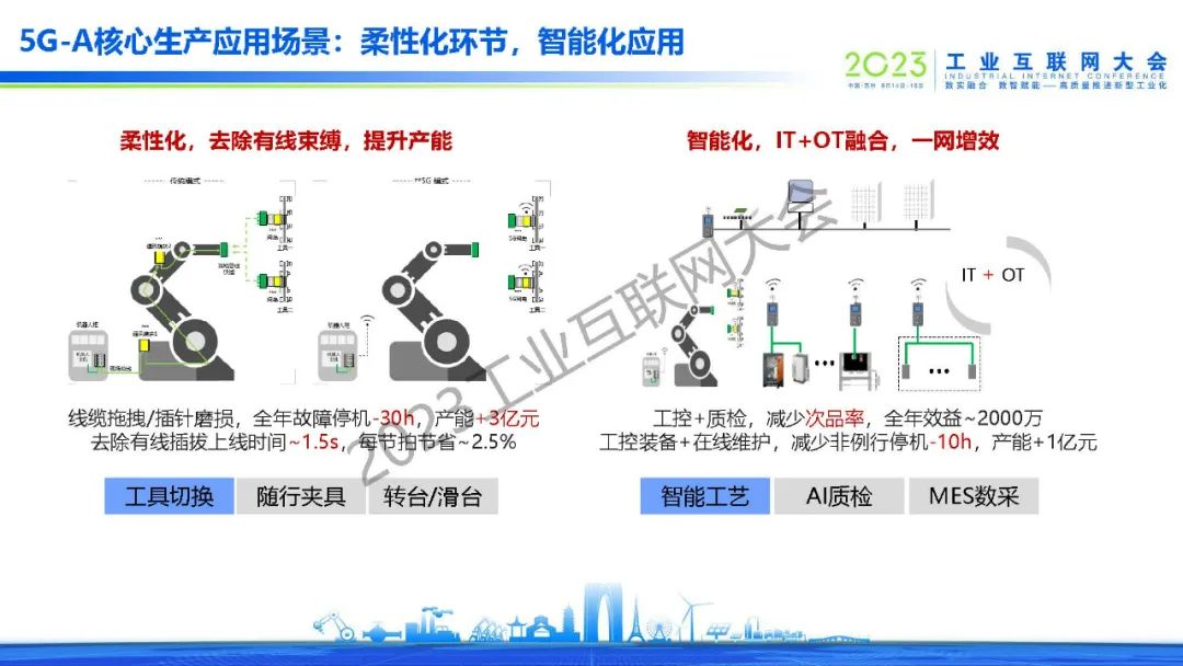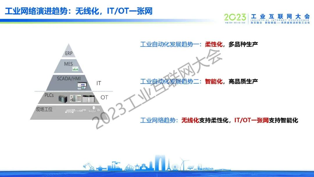 谷蓉婷指出,工業網絡趨勢是無線化支持柔性化和IT/OT一張網支持智能化。5G全連接實現了從輔助生產到核心生產,IT+OT一張網。通過柔性化,去除有線束縛,提升產能,通過智能化,IT+OT融合,一網增效。5G+工控生態取得了不少技術突破,首批5G工控設備,全場景匹配OT設備5G接入。